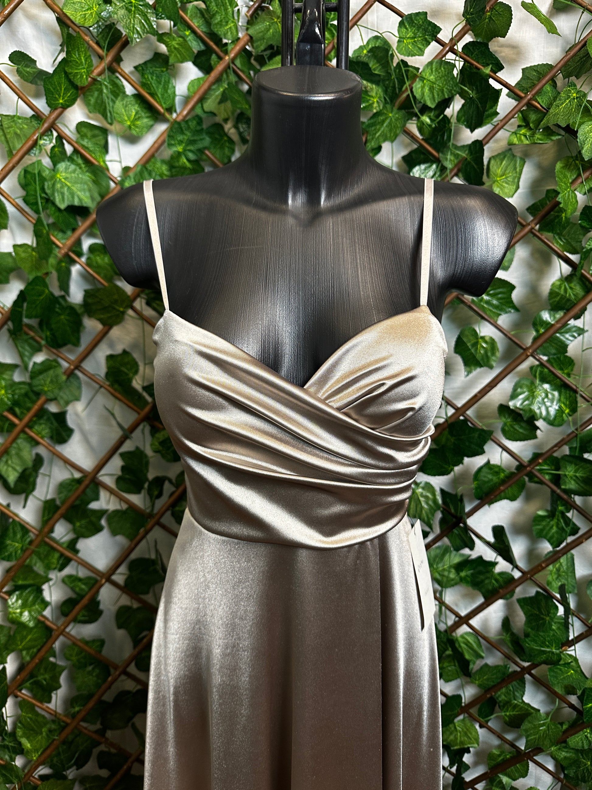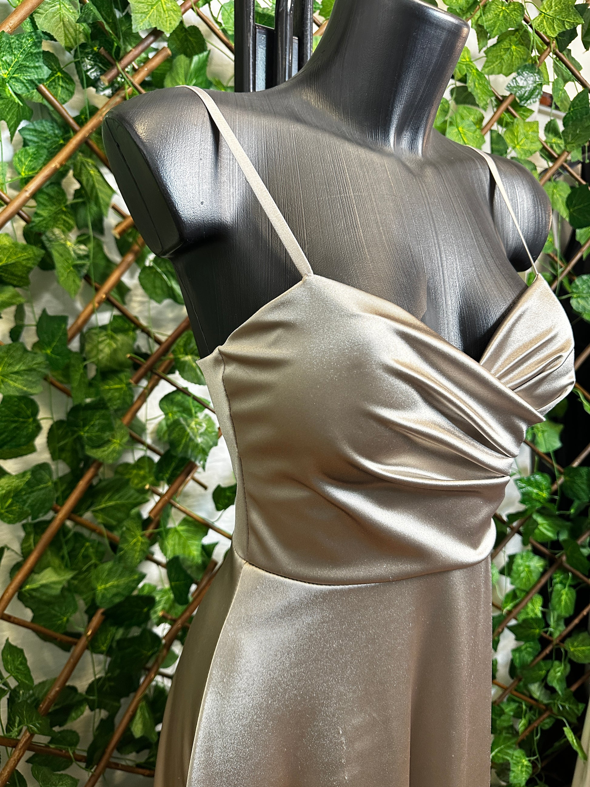 Enhance your style with this elegant satin dress. Crafted from high-quality fabric, this dress is perfect for special occasions. Its flowing silhouette and satin finish lend an elegant and sophisticated look. Add a touch of class to your wardrobe with this dress.