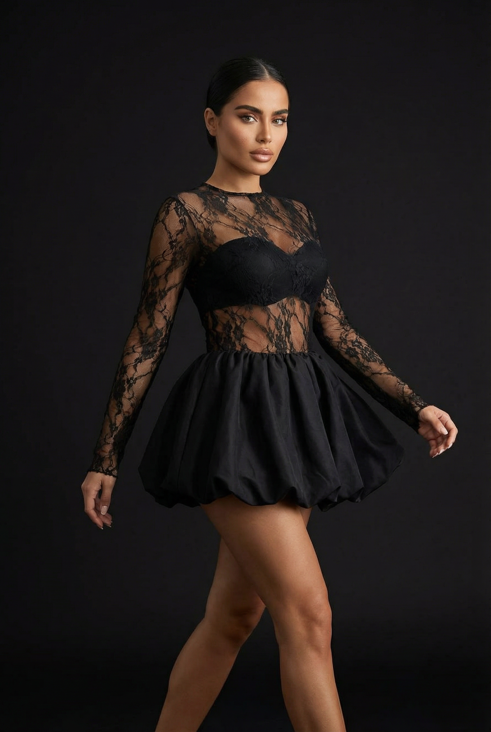 Mini Dress in Pizzo e Gonna a Palloncino – Incanto Notturno