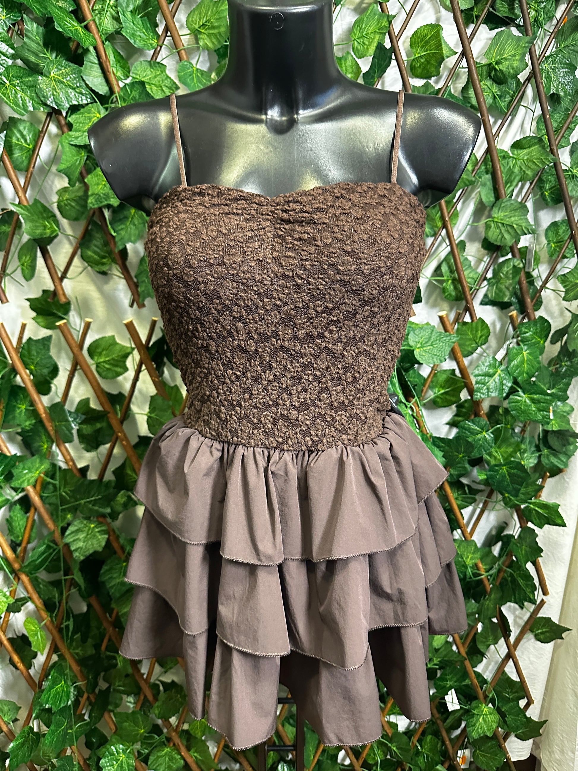 Crepe style: short dress with a flared skirt and adjustable straps | one size