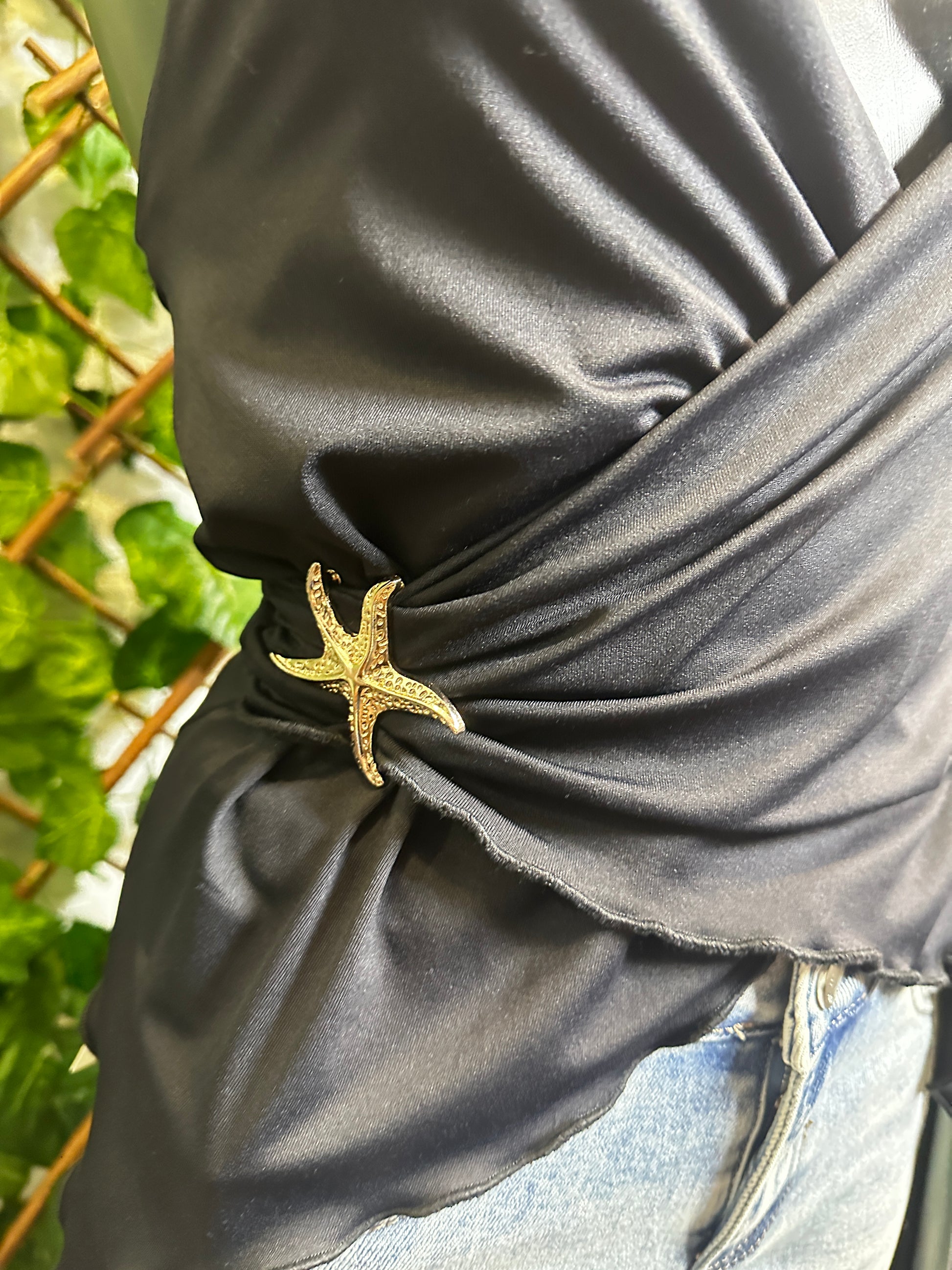 This trendy top features a deep neckline that accentuates your femininity. Featuring a starfish detail, it adds a unique touch of style to your look. Crafted from high-quality materials, it's perfect for any occasion. You won't go unnoticed in this top.
