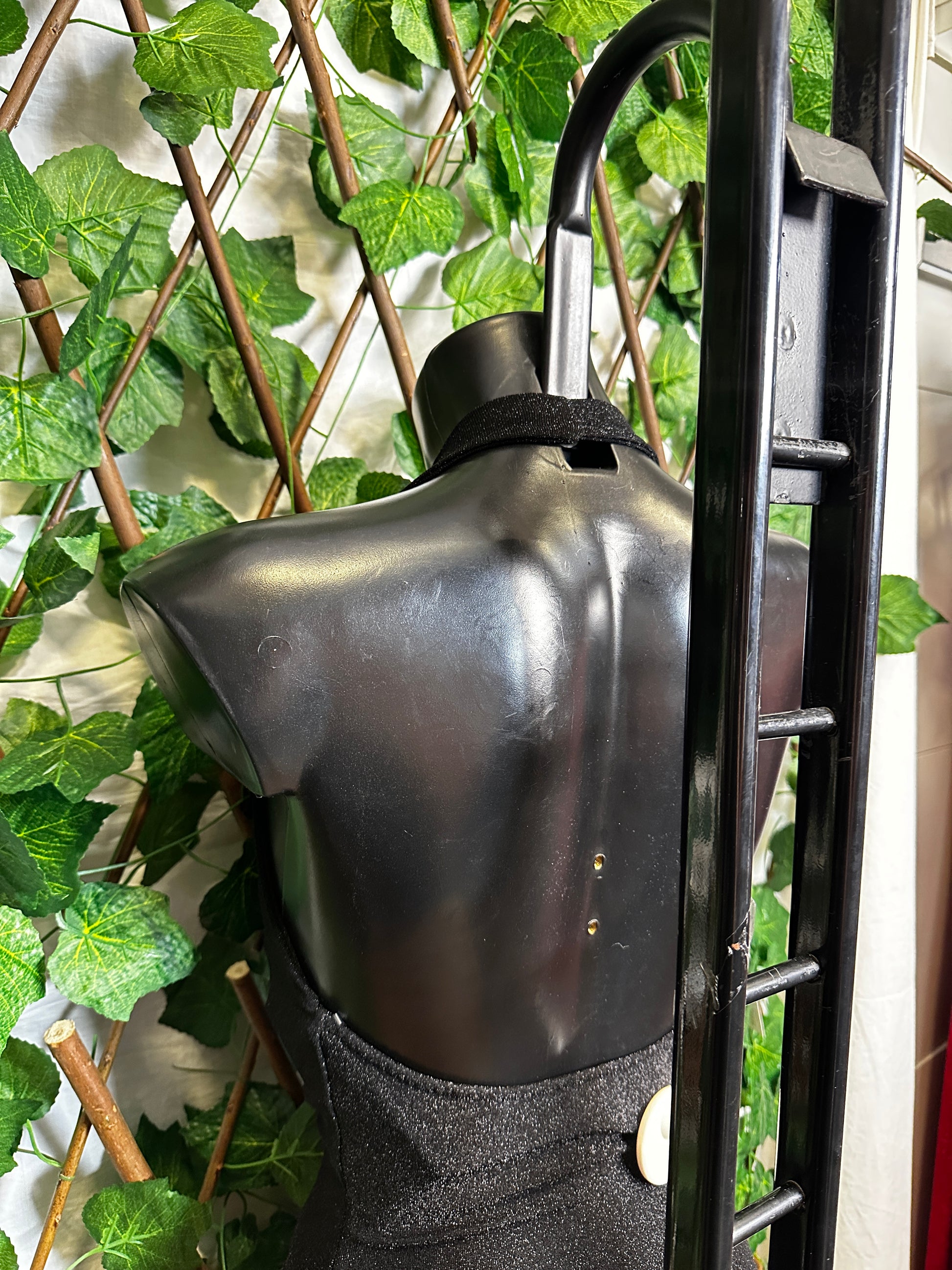 One size fits all: fits perfectly from XS to L, featuring a deep neckline and open back.