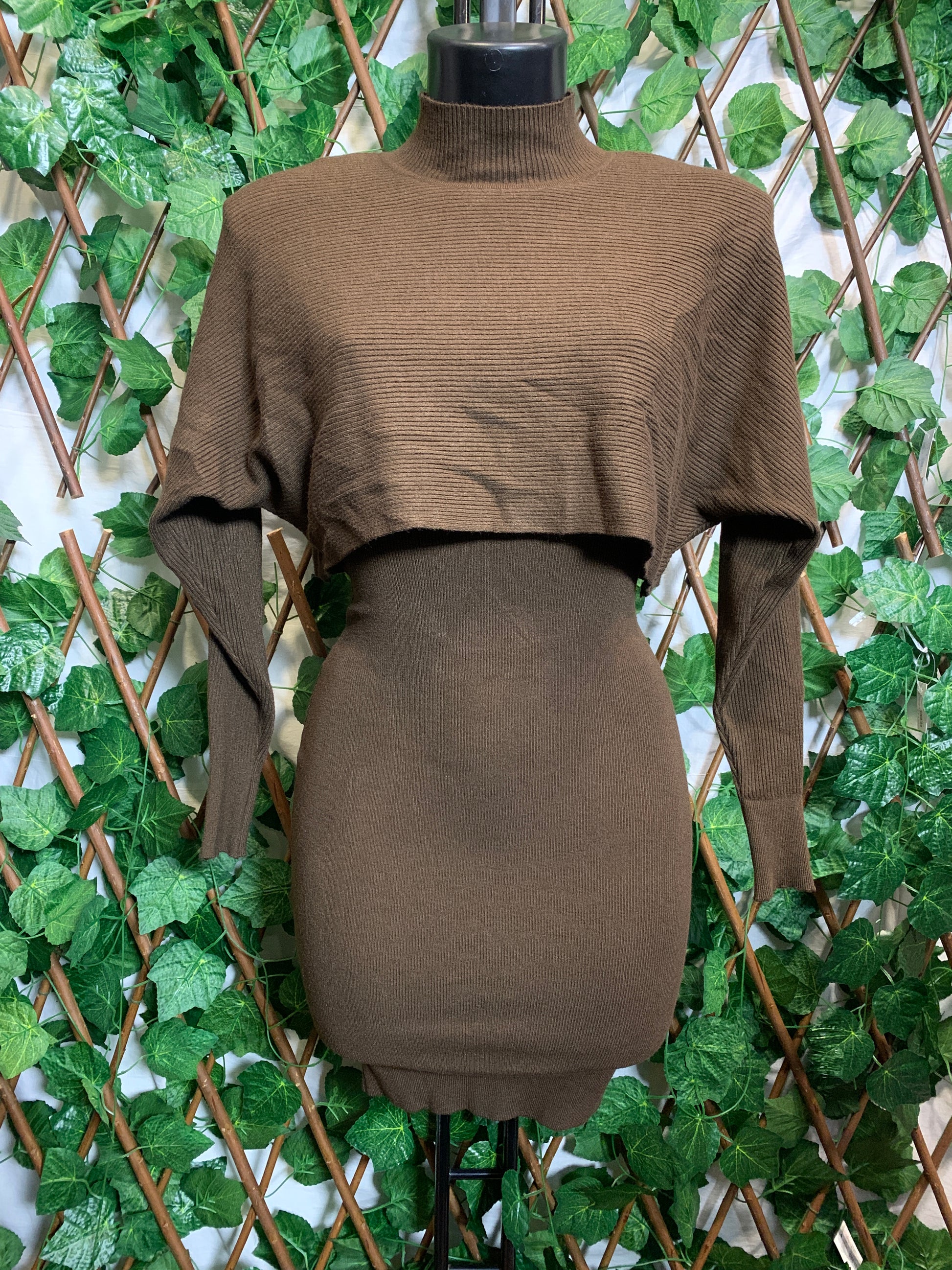 Questo completo in maglia è composto da un mini dress aderente e un coprispalle coordinato che lo rende perfetto per l’autunno/inverno. Il vestito segue le curve con dolcezza, mentre la parte sopra aggiunge un tocco trendy e cozy.