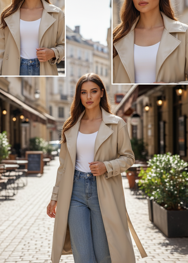 Questa giacca lunga effetto pelle è il capo must-have della stagione: elegante, decisa e super versatile. Il taglio dritto e moderno si abbina perfettamente a vestiti, jeans o completi, per un look da vera IT GIRL.