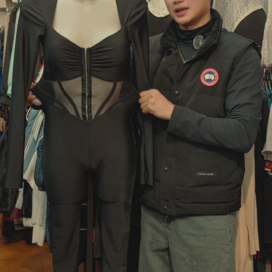 Jumpsuit "Obsidian Mesh" – Tuta Intera Aderente con Trasparenze Frontali