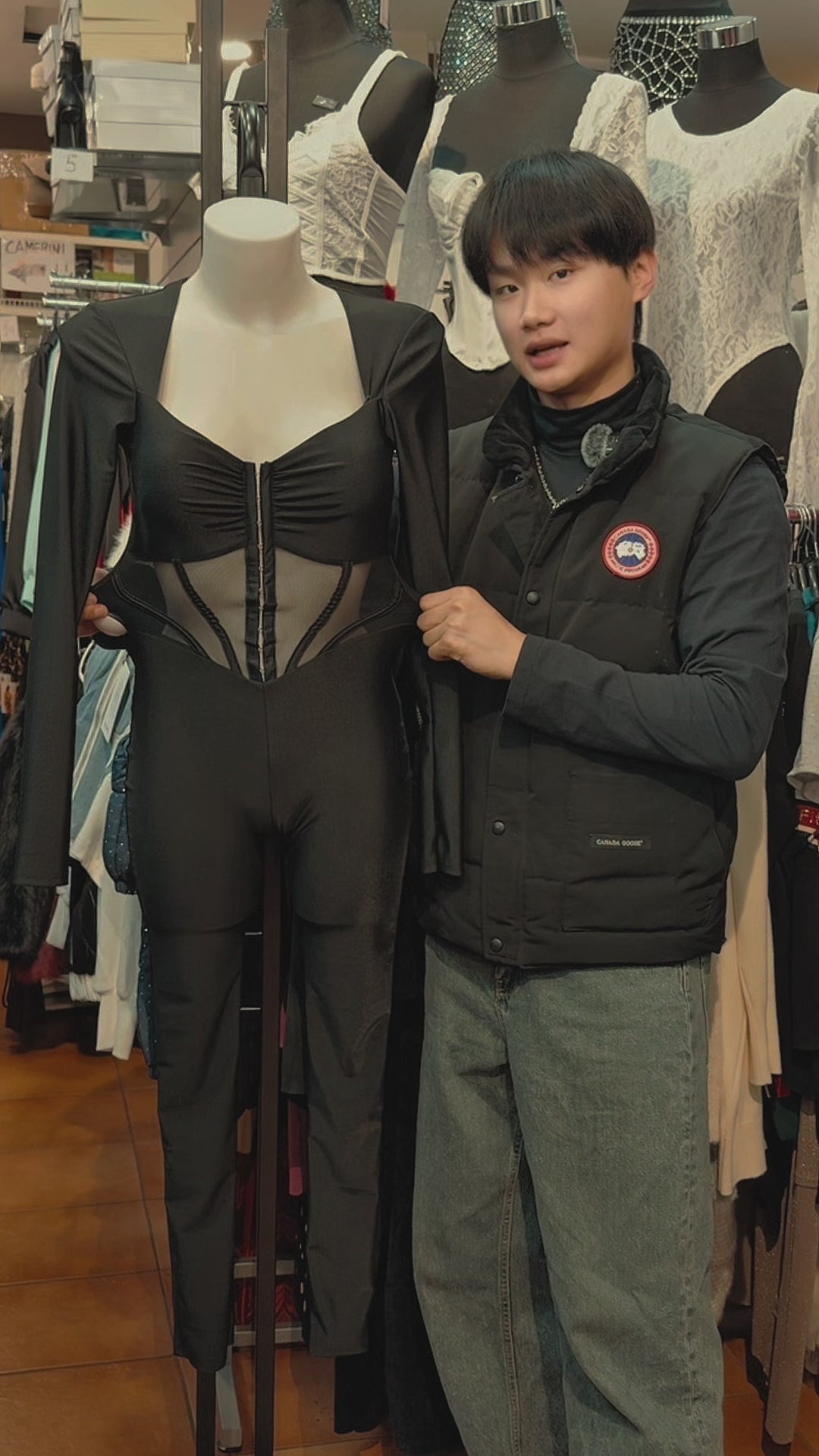 Immagina di entrare in una stanza e catturare istantaneamente ogni sguardo. La nostra jumpsuit "Obsidian Mesh" è stata creata per la donna che non ha paura di mostrare la propria sicurezza. Il design bodycon scolpisce la silhouette dalla testa ai piedi, mentre la parte anteriore è arricchita da un inserto in mesh trasparente che crea un effetto "vedo-non-vedo" sofisticato e magnetico.