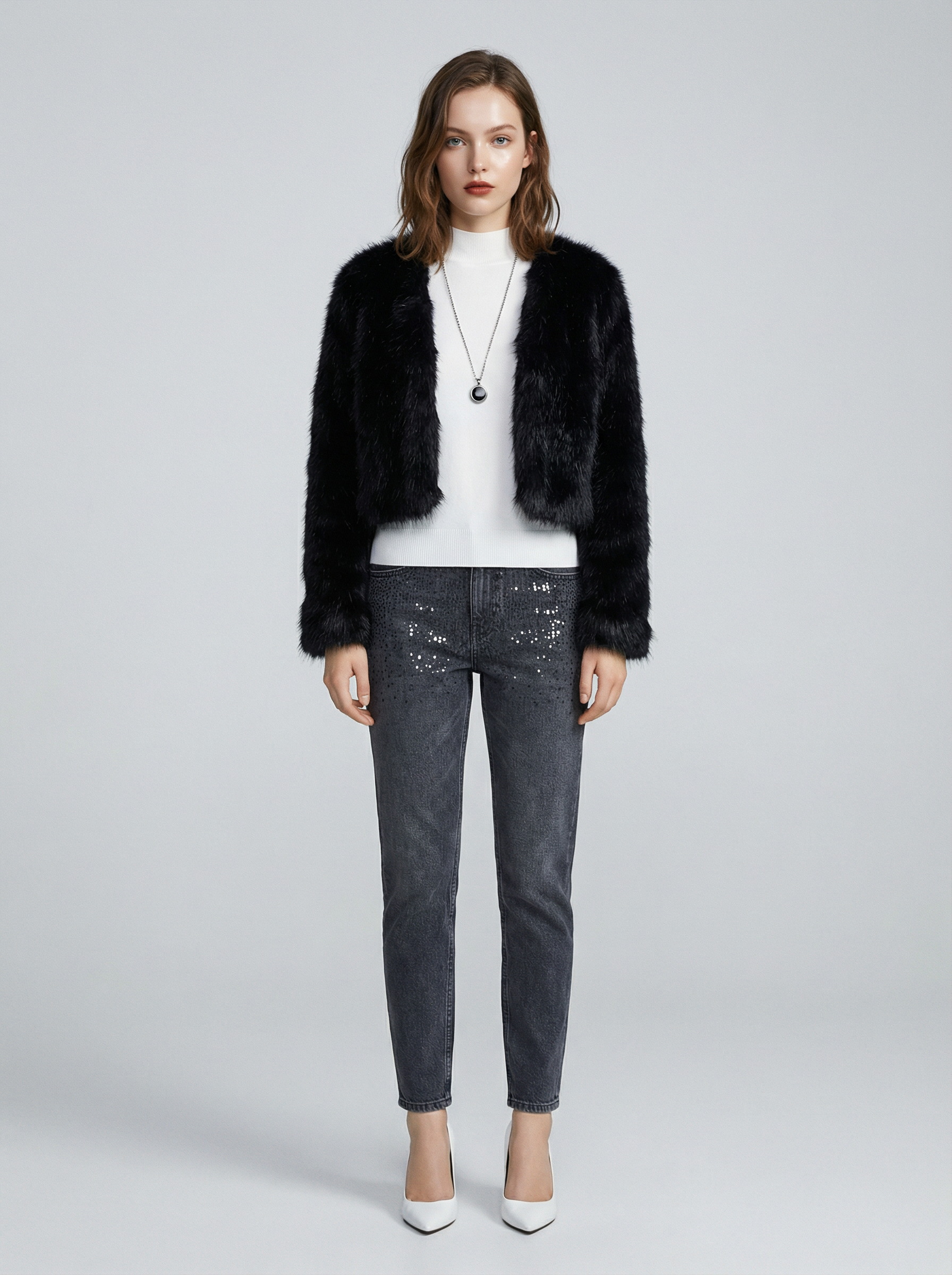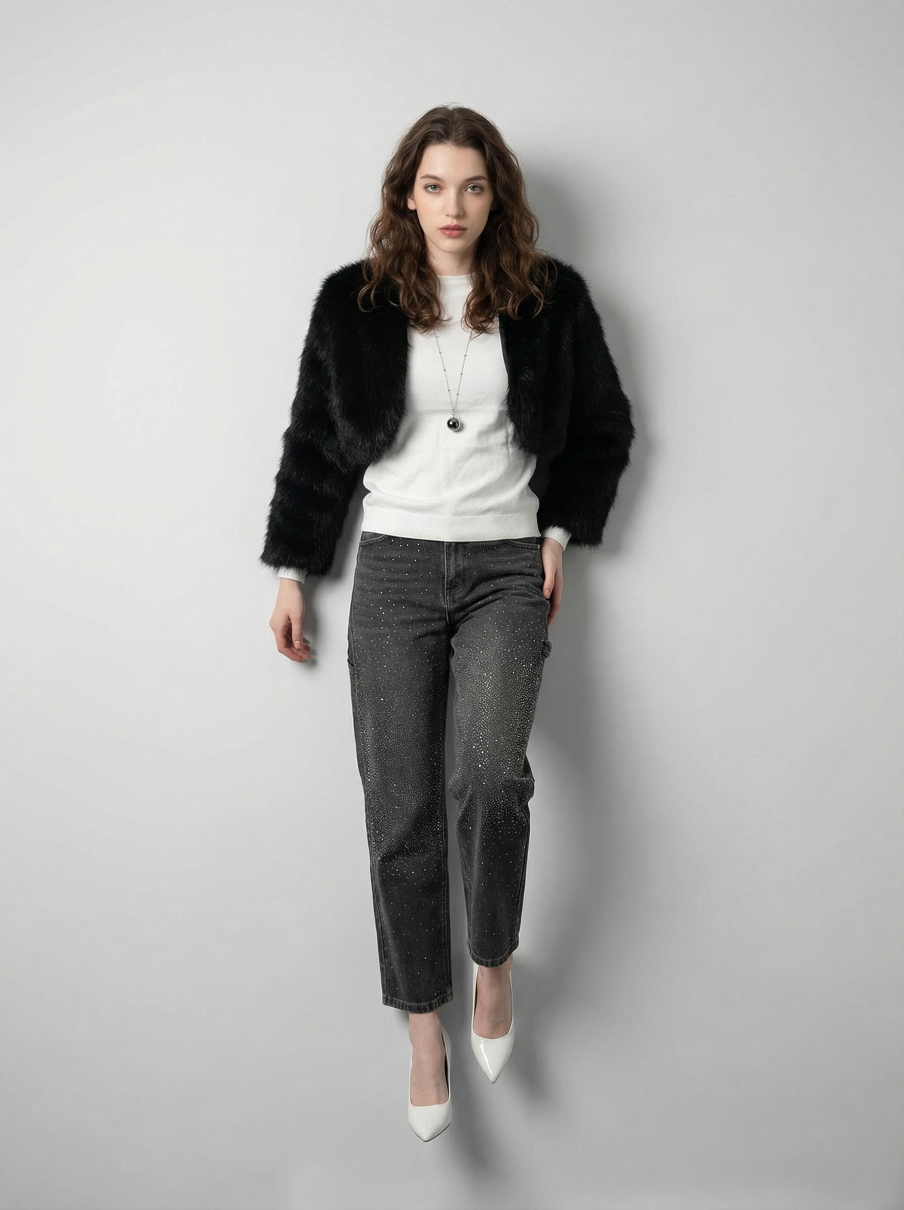 Quando entri nel locale, tutti si fermano. Non c'è bisogno di parlare, il tuo lusso parla per te. LUXURY FATALE è il giacchino che trasforma un outfit aderente in una dichiarazione di eleganza audace. La pelliccia ecologica a pelo lungo è incredibilmente morbida sulla pelle, avvolgendo le spalle con una sensualità che evoca opulenza.