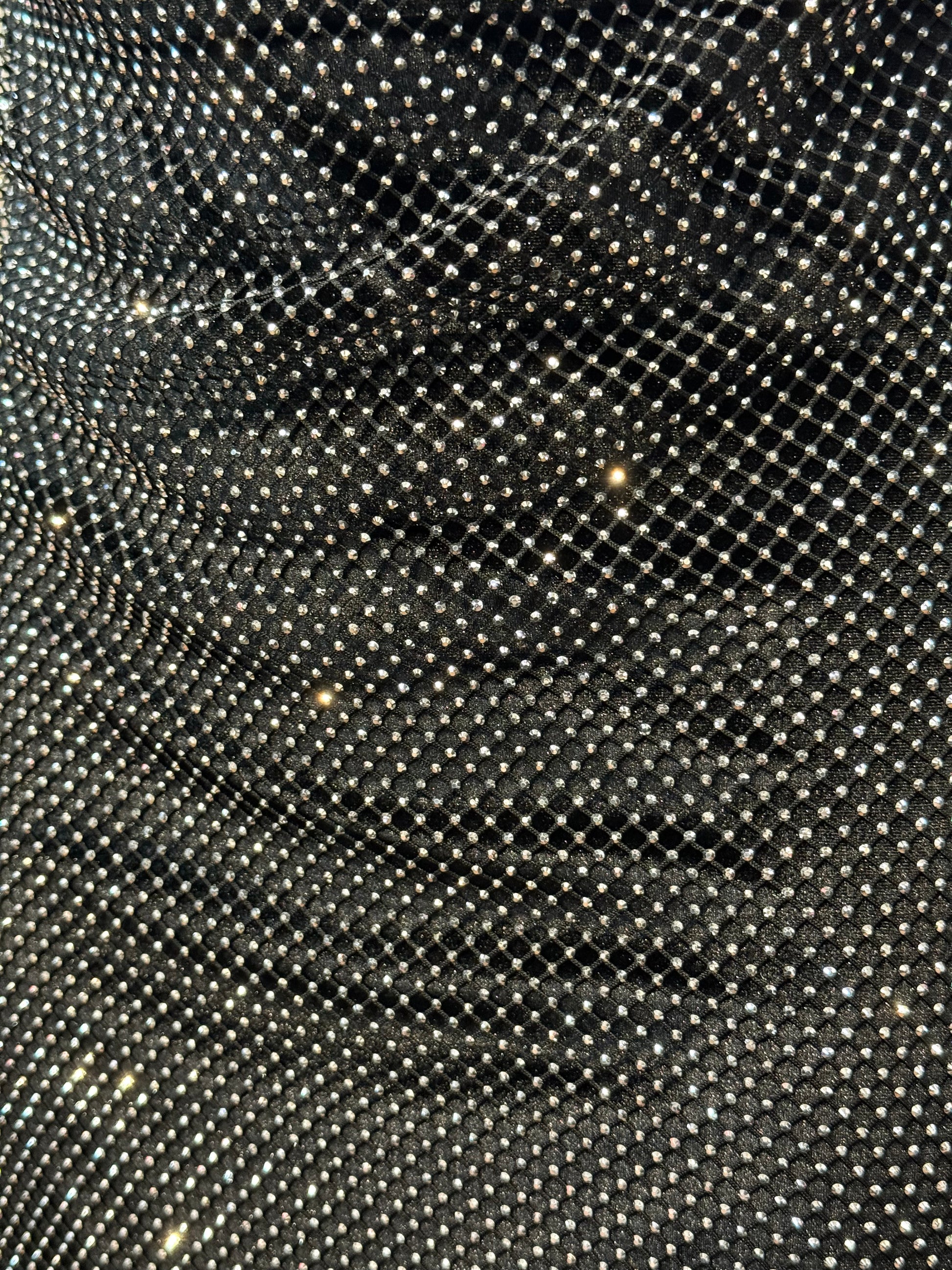 Materiale Esterno: Rete metallica coperta di Strass (100% Poliestere)