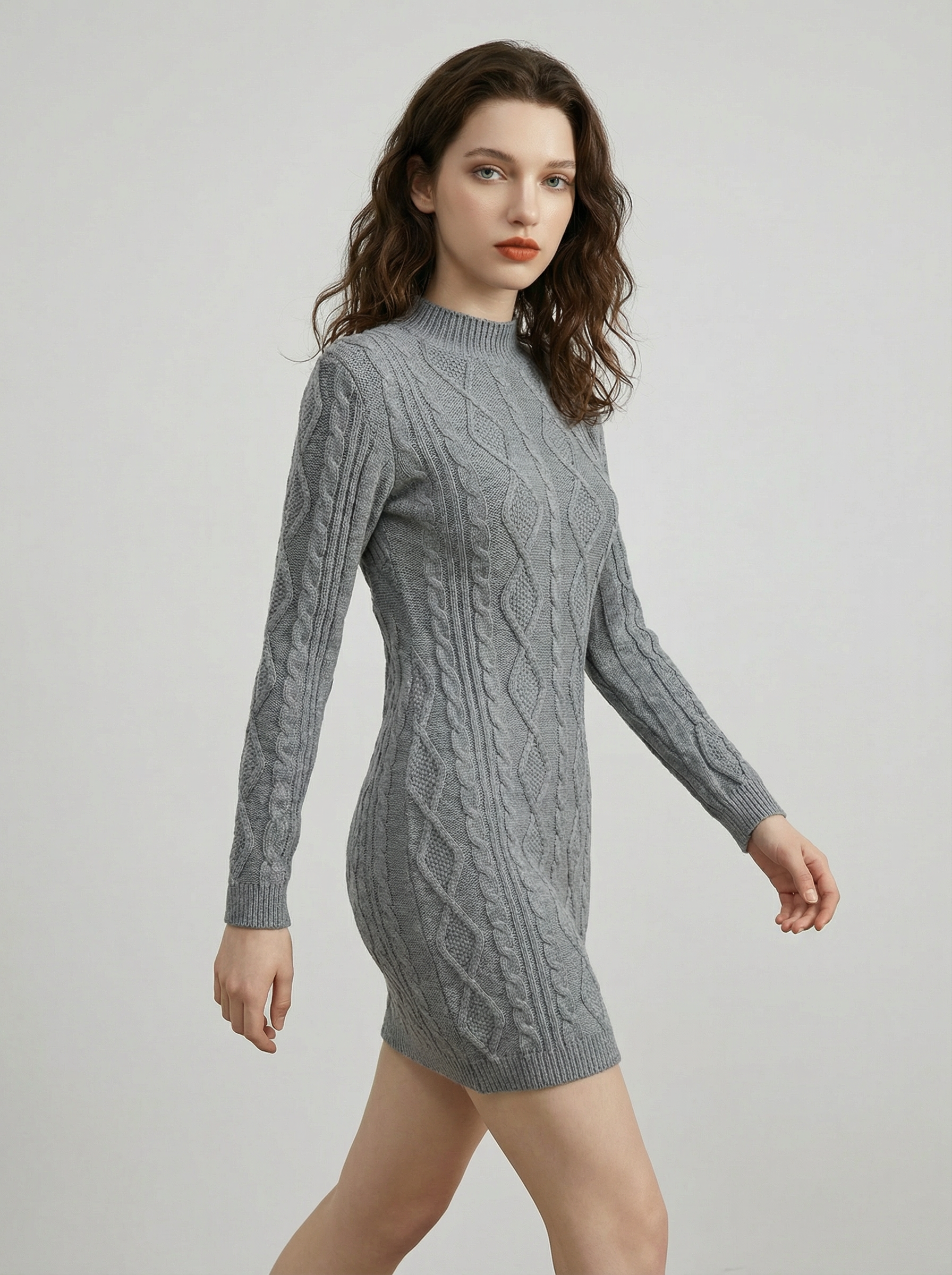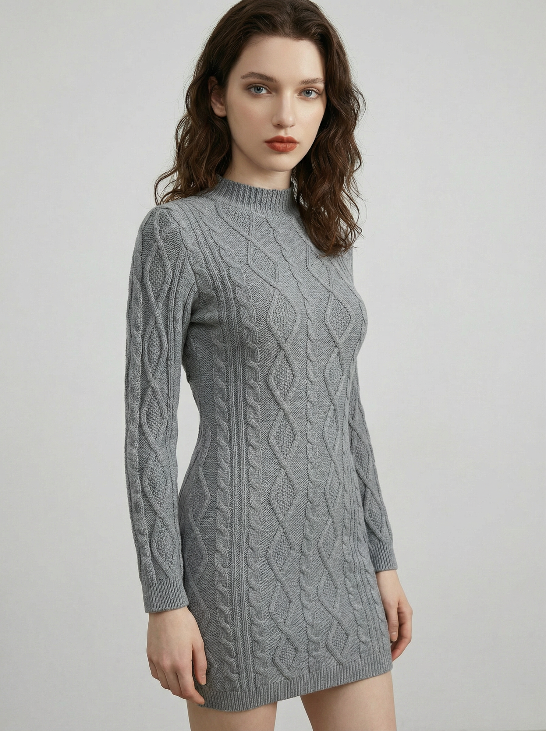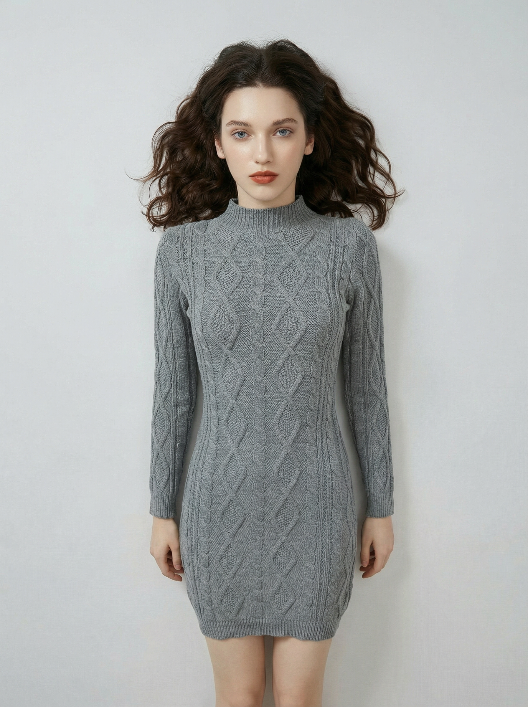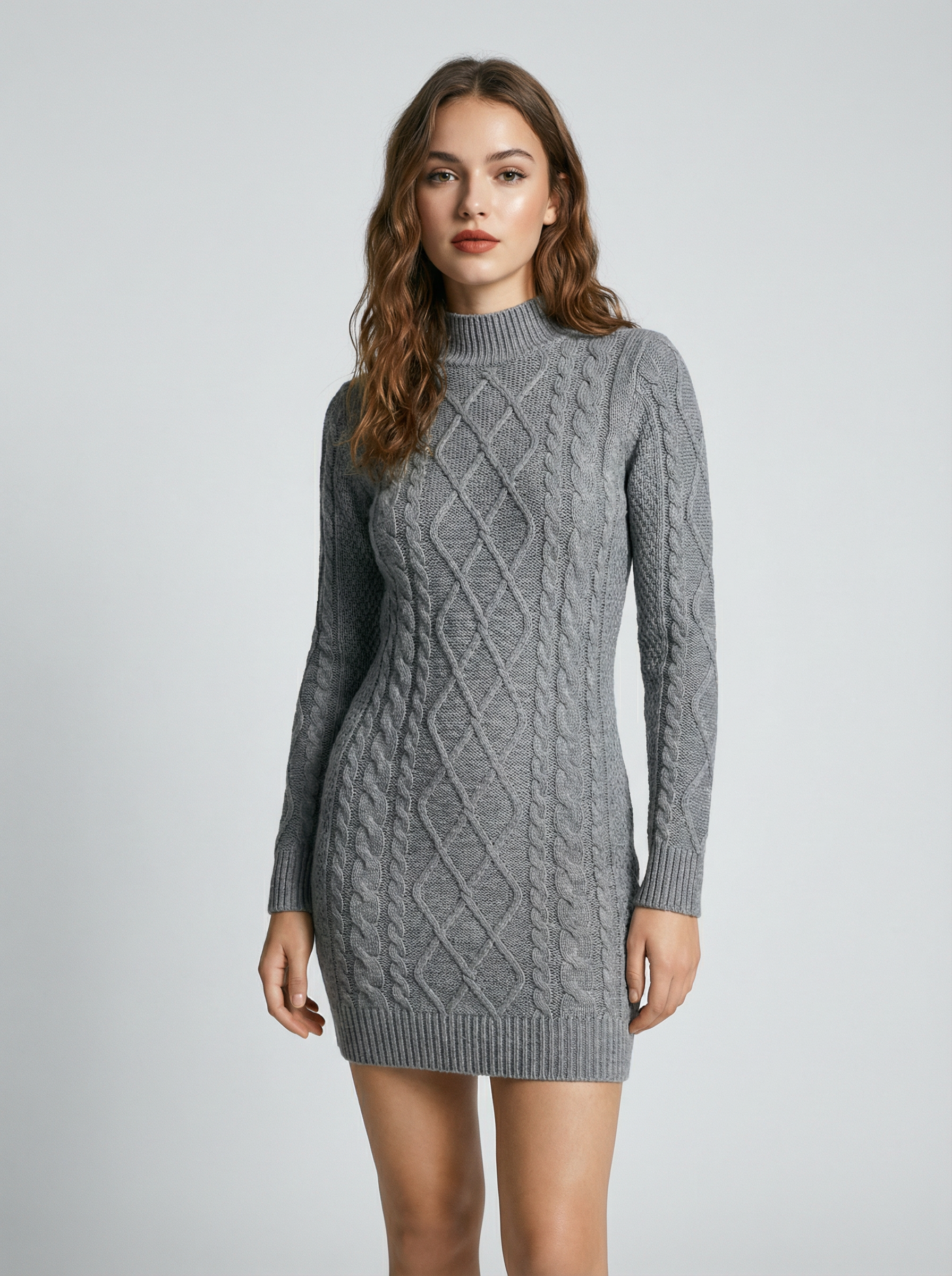 Quando entri nel locale, la morbidezza della maglia ti avvolge, ma la tua sensualità è scoperta. Sei una sorpresa audace! 🌹 MISTERIOSO CALORE è il mini-abito in maglia che ti permette di dominare la serata con classe e energia, anche quando fa freddo. La lavorazione a trecce aderente modella la tua figura, esaltando le curve 🍑 con eleganza invernale.