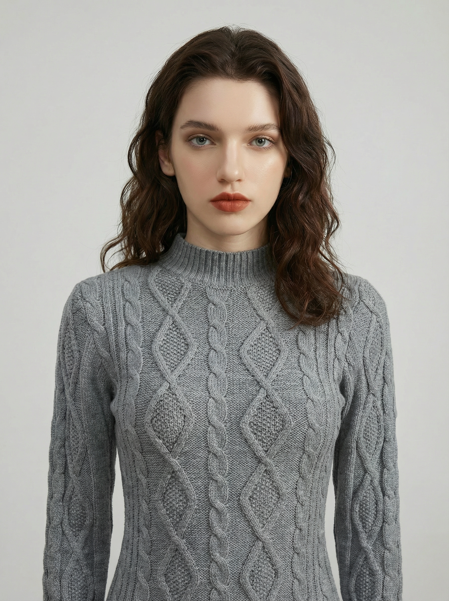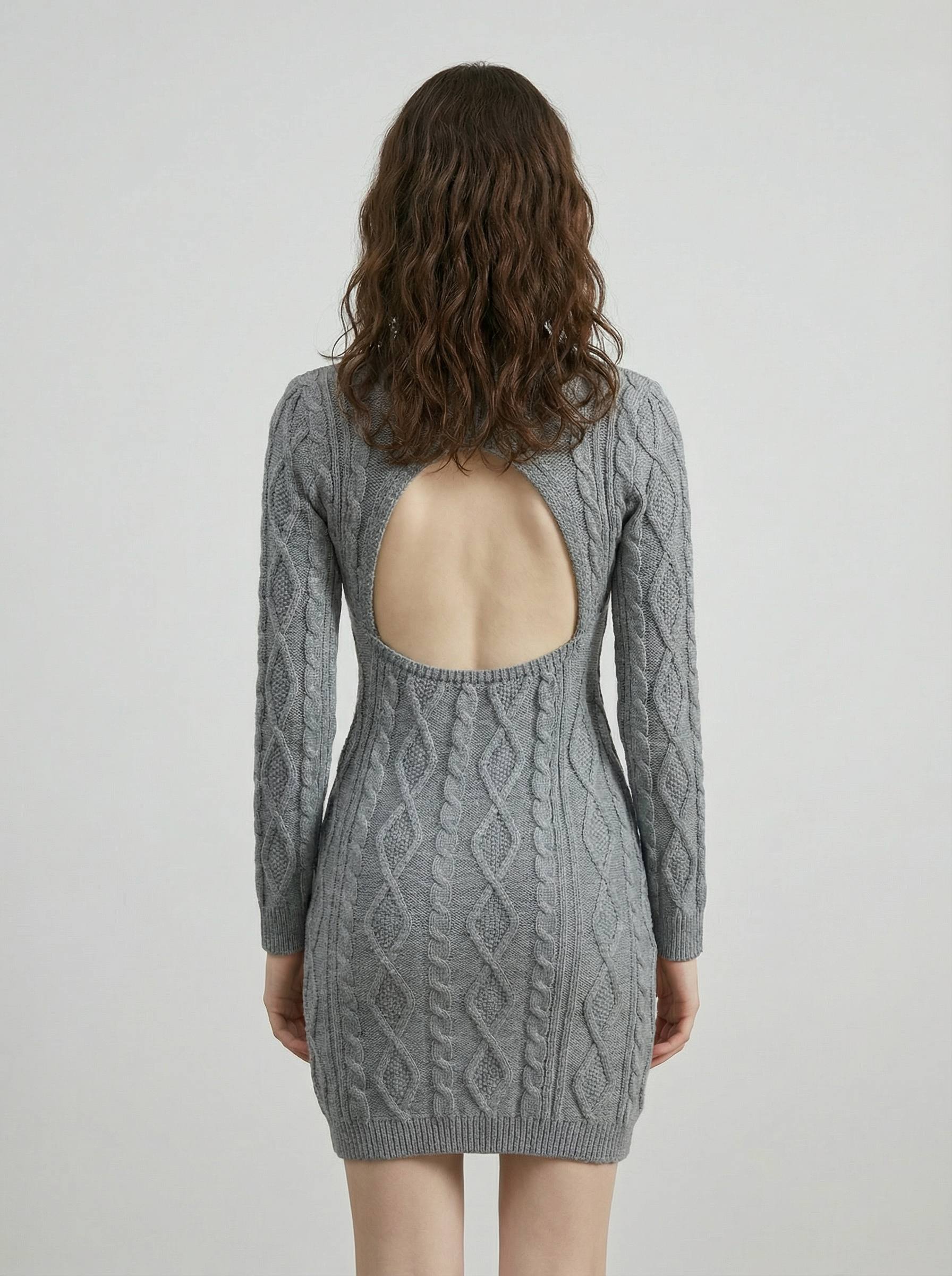 Domanda: Il tessuto è caldo? Risposta: Sì, la maglia a trecce è spessa e calda, perfetta per le serate invernali, con l'elemento audace della schiena scoperta.