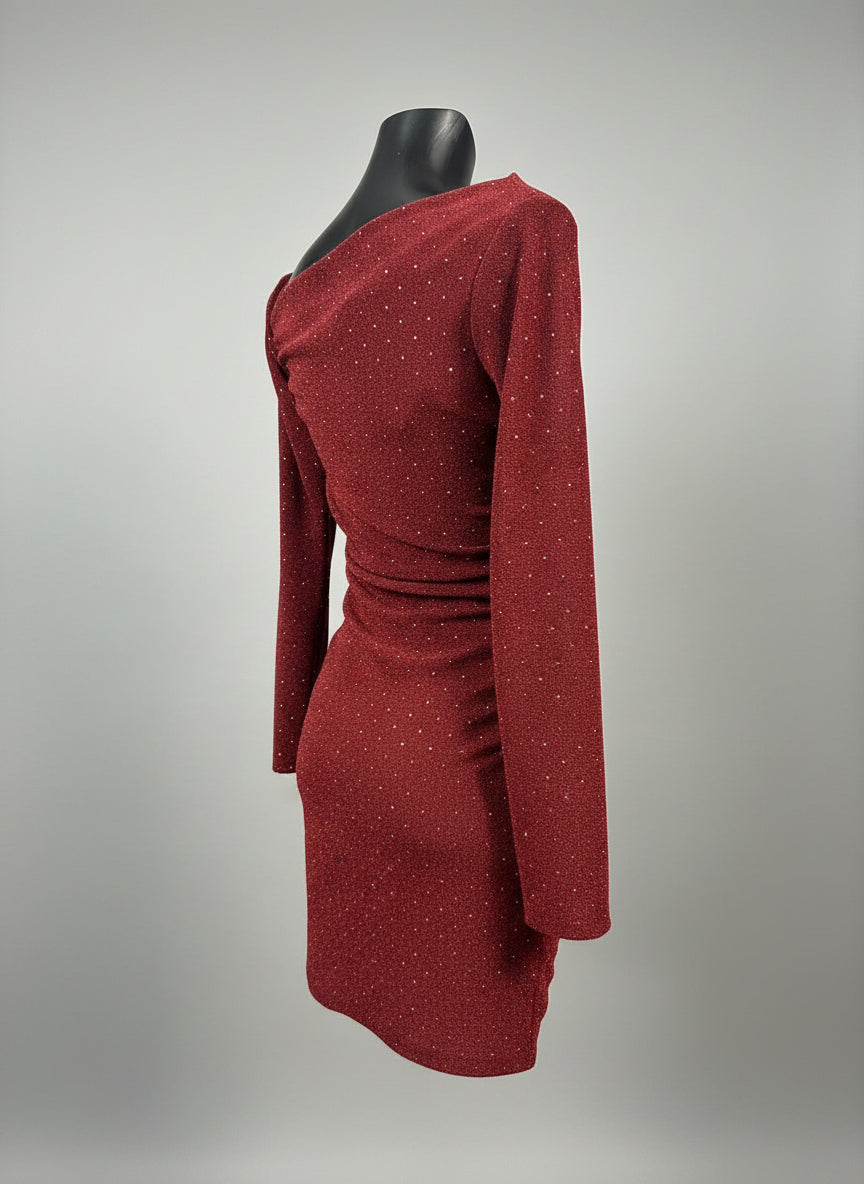 Mini Dress Glitter Monospalla Drappeggiato – Notte Scintillante