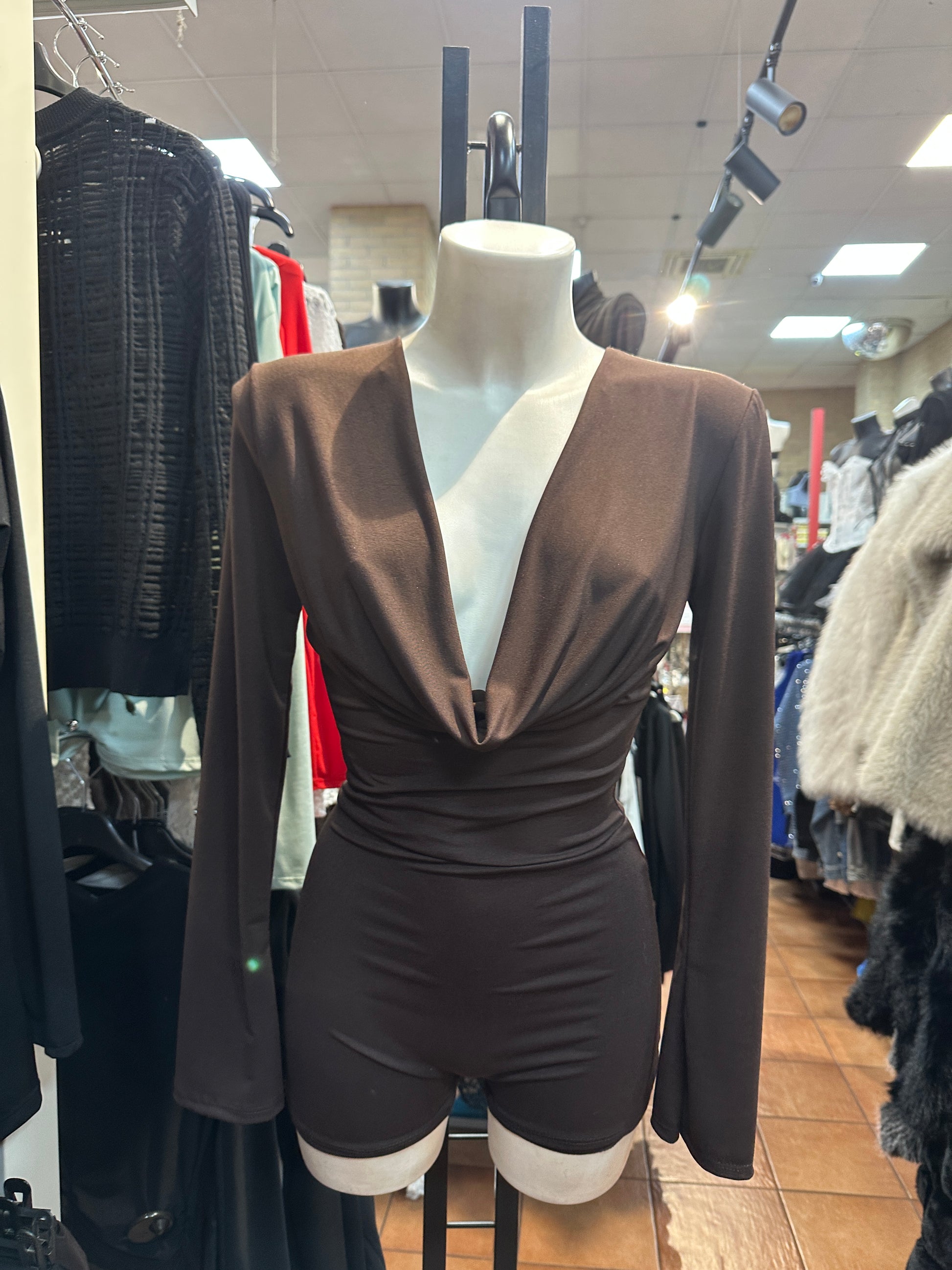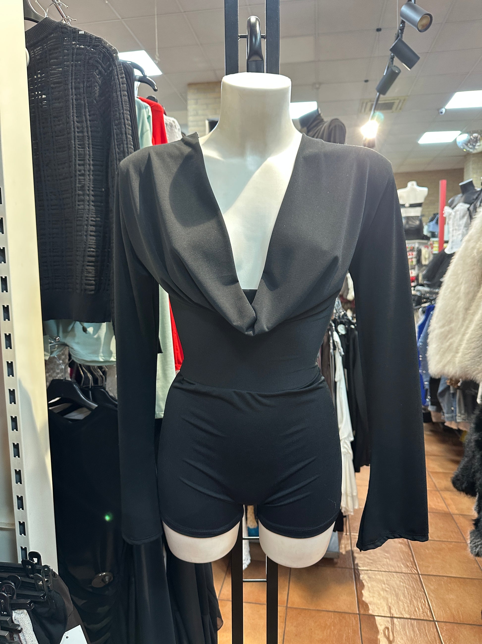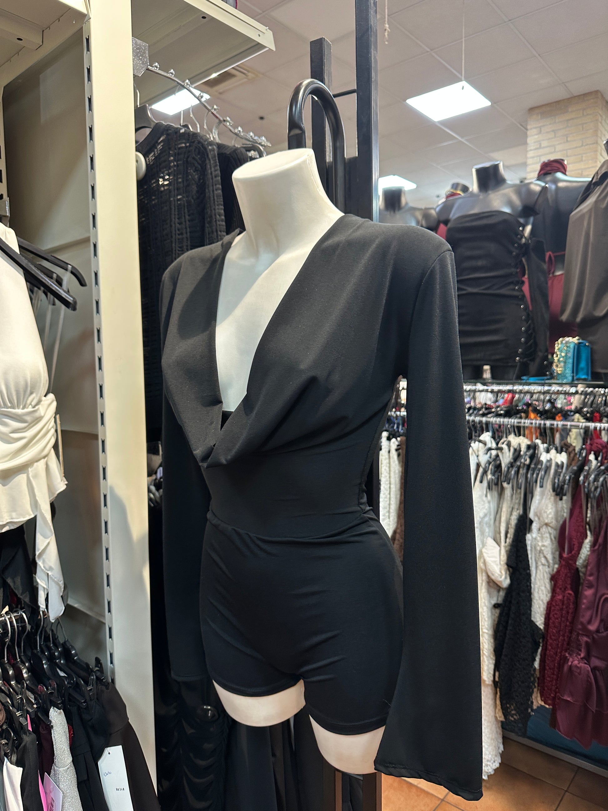 Tuta corta maniche lunghe con scollo a cascata – TENTAZIONE NOTTURNA 🌹🔥