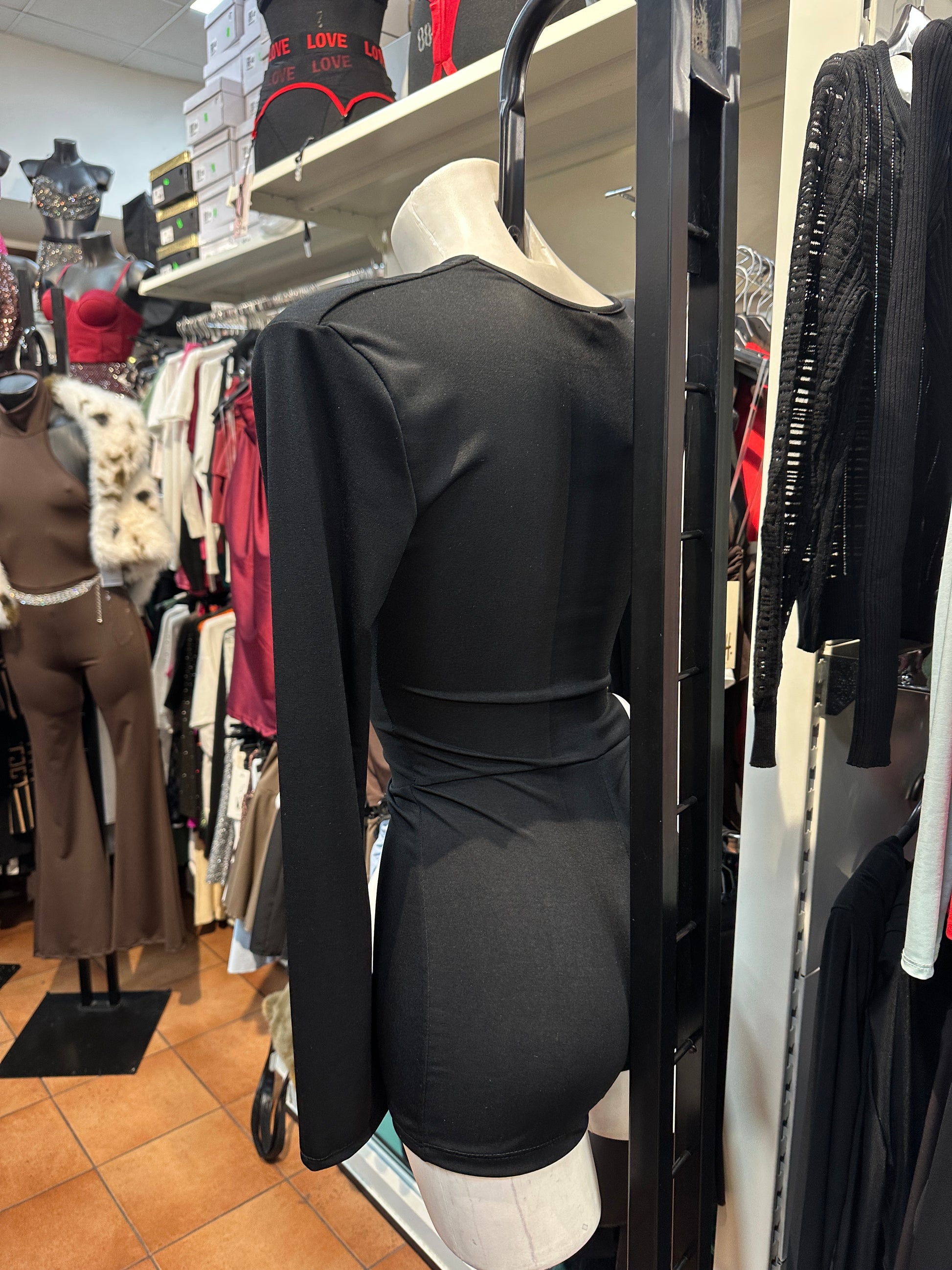 TENTAZIONE NOTTURNA non è un semplice body, è una scultura sensuale di tessuto. Le maniche lunghe donano eleganza, ma è lo scollo a cascata effetto wow che ti fa sentire audace e irraggiungibile. Questo design profondo incornicia il décolleté con mistero e classe.