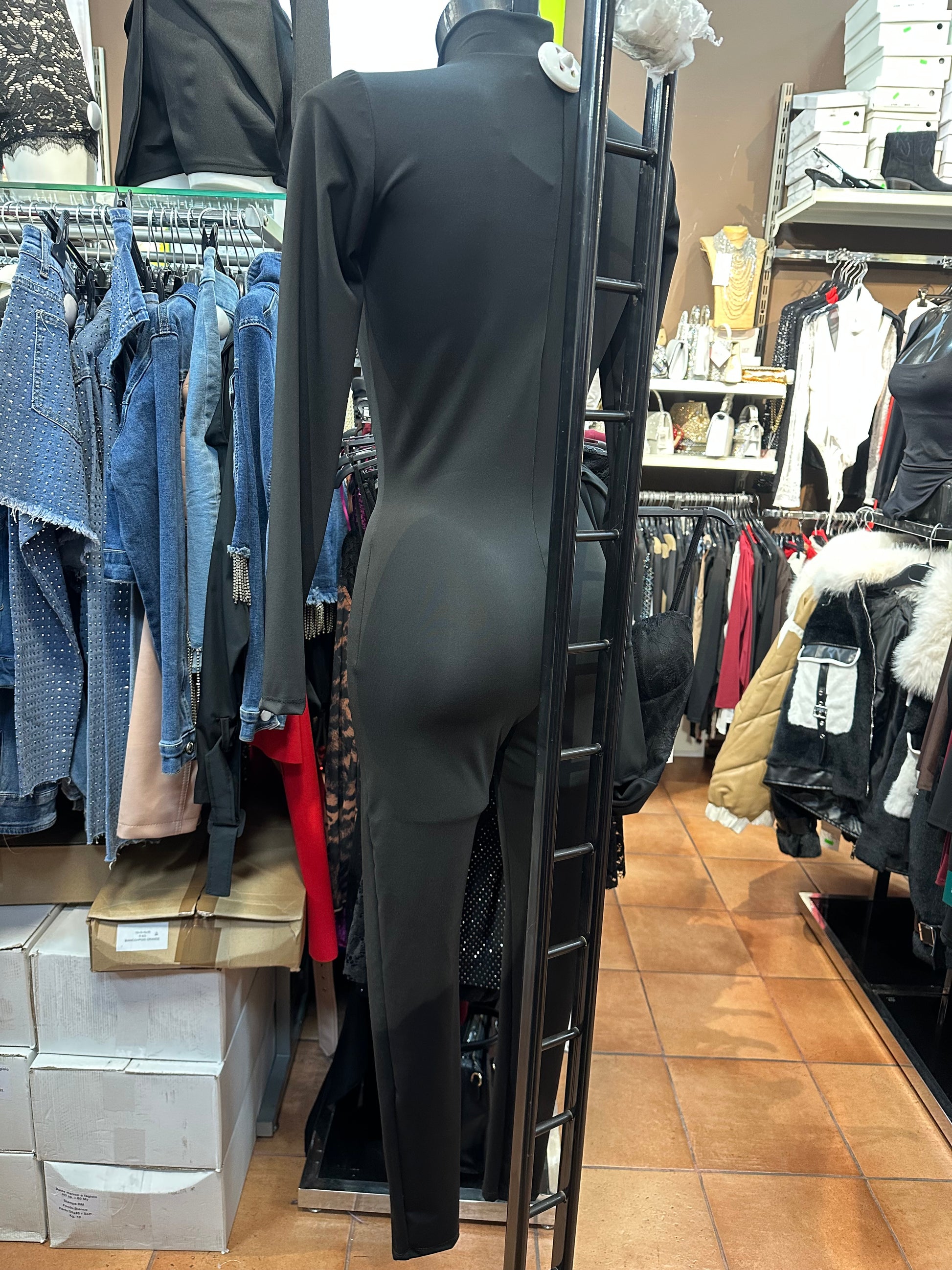 Appena la indossi, senti immediatamente il potere di un fit che scolpisce e sostiene ogni tua mossa. Questa non è solo una tuta da palestra, è la tua nuova alleata per superare ogni limite con stile e grinta. Quando entri nel box o in sala pesi, la silhouette total black cattura l'attenzione, riflettendo una determinazione incrollabile. Le cuciture a vista sono studiate per disegnare le tue forme in modo scultoreo, mentre il design pulito a collo alto ti dona un’aria sofisticata e decisa. Sentiti avvolta in un abbraccio elastico che asseconda ogni squat, ogni salto e ogni respiro, mantenendo una flessibilità assoluta. Che tu stia affrontando un allenamento intenso o un pomeriggio di urban style, questa jumpsuit ti fa sentire bellissima, forte e pronta a tutto. Eleva la tua energia e trasforma il tuo movimento in pura eleganza atletica.