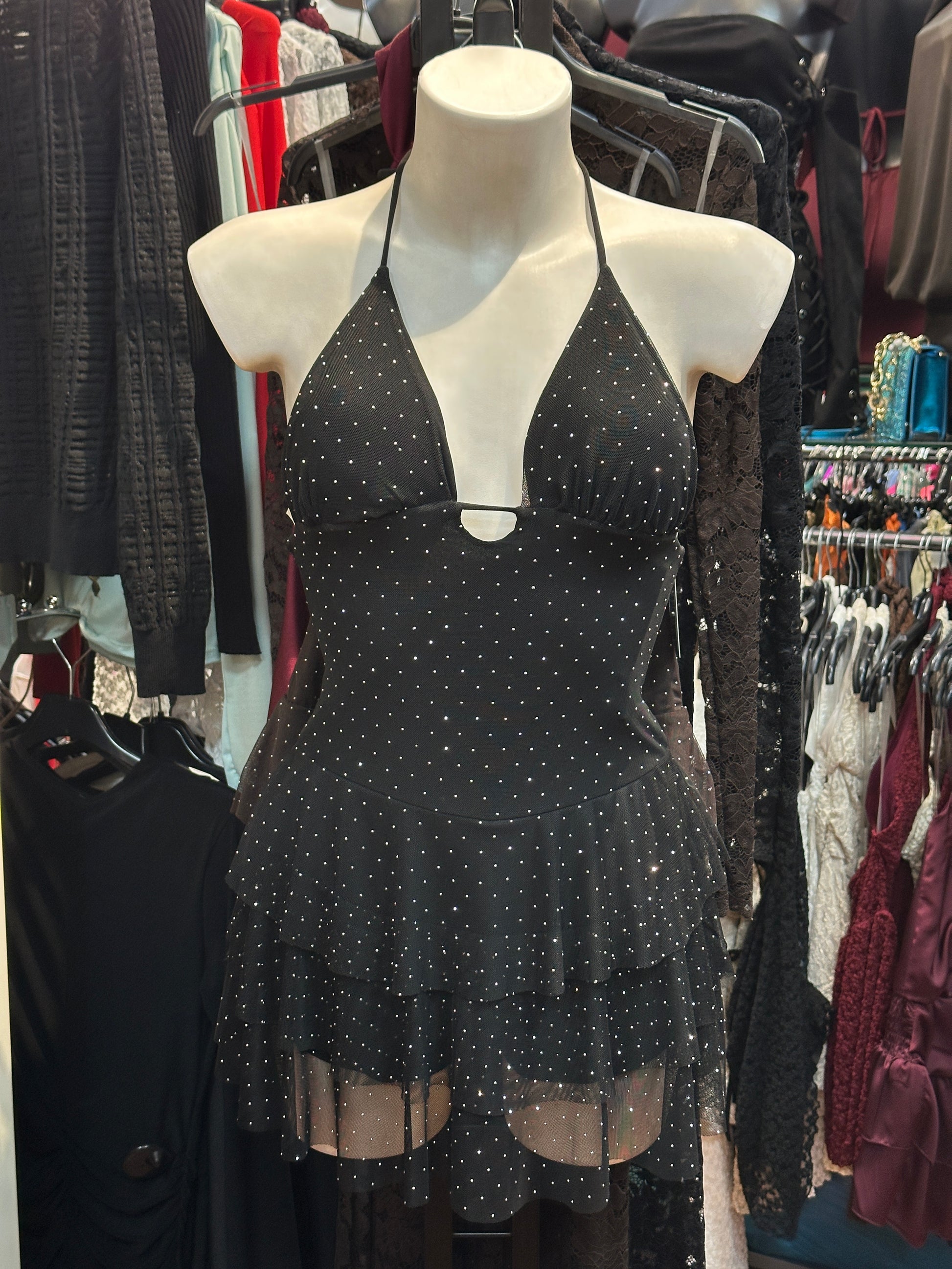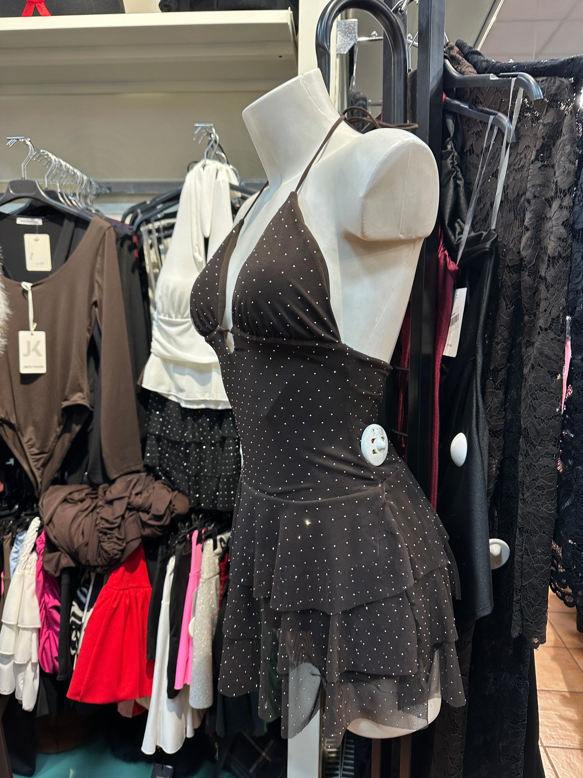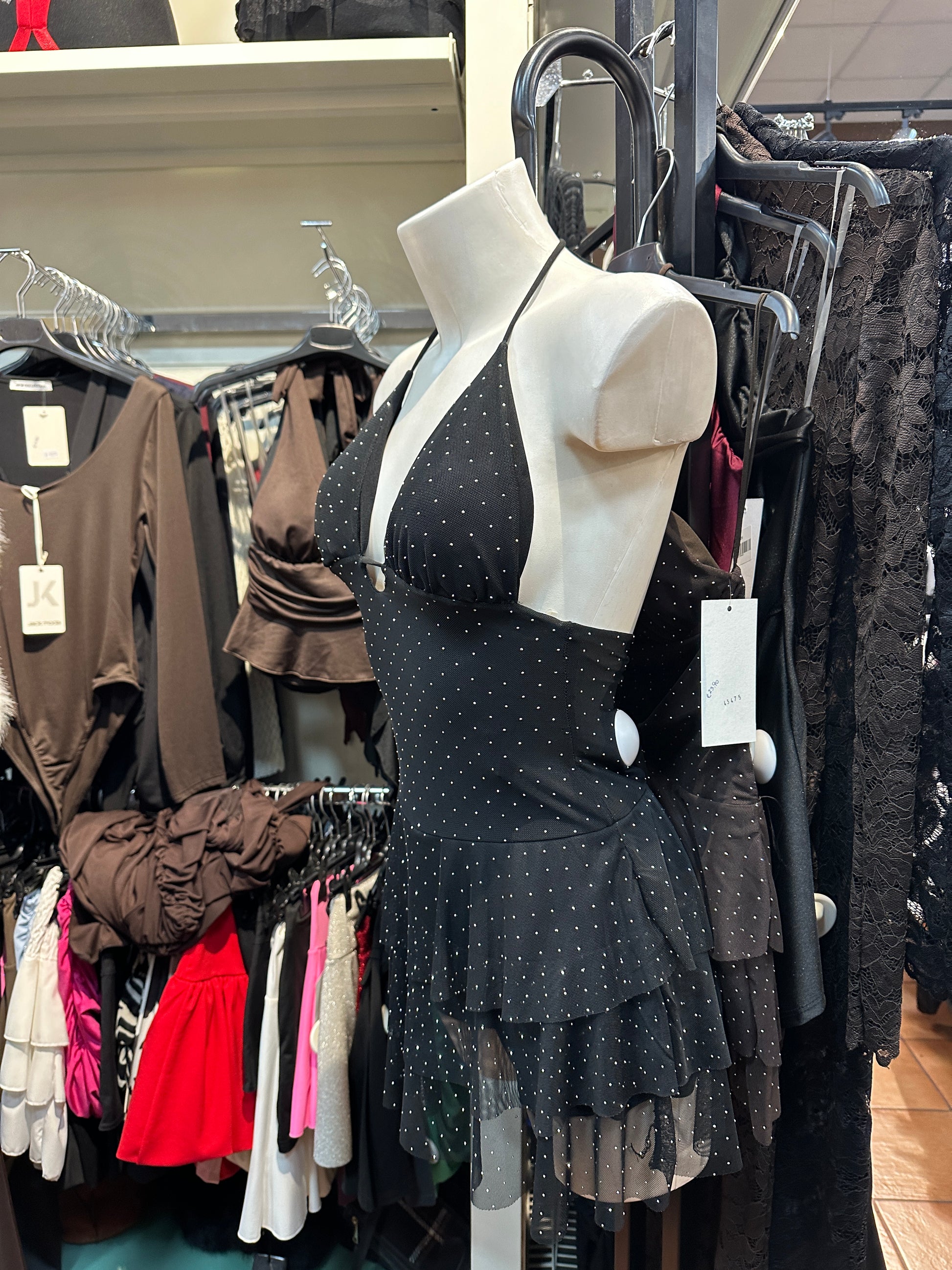 Mini-abito balze e scollo all'americana con punti luce – SOGNO DI MEZZANOTTE ✨🌙
