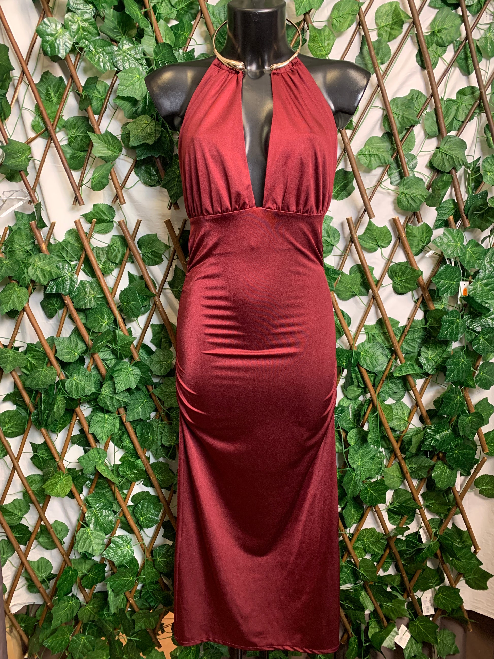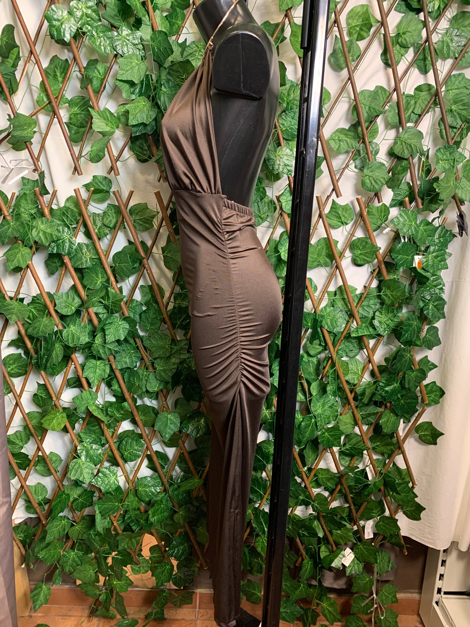 Vestito lungo con dettagli dorato e arricciatura sui fianchi