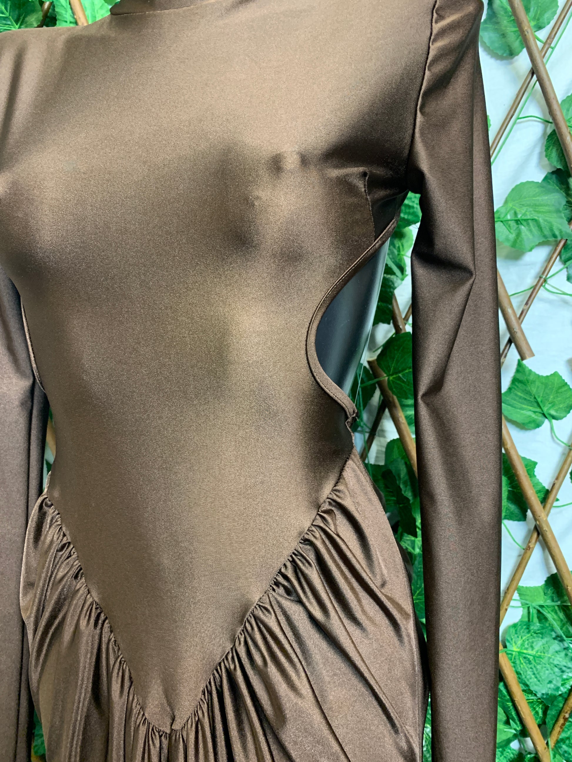 Vestito lungo con spalla imbottita e schiena scoperta