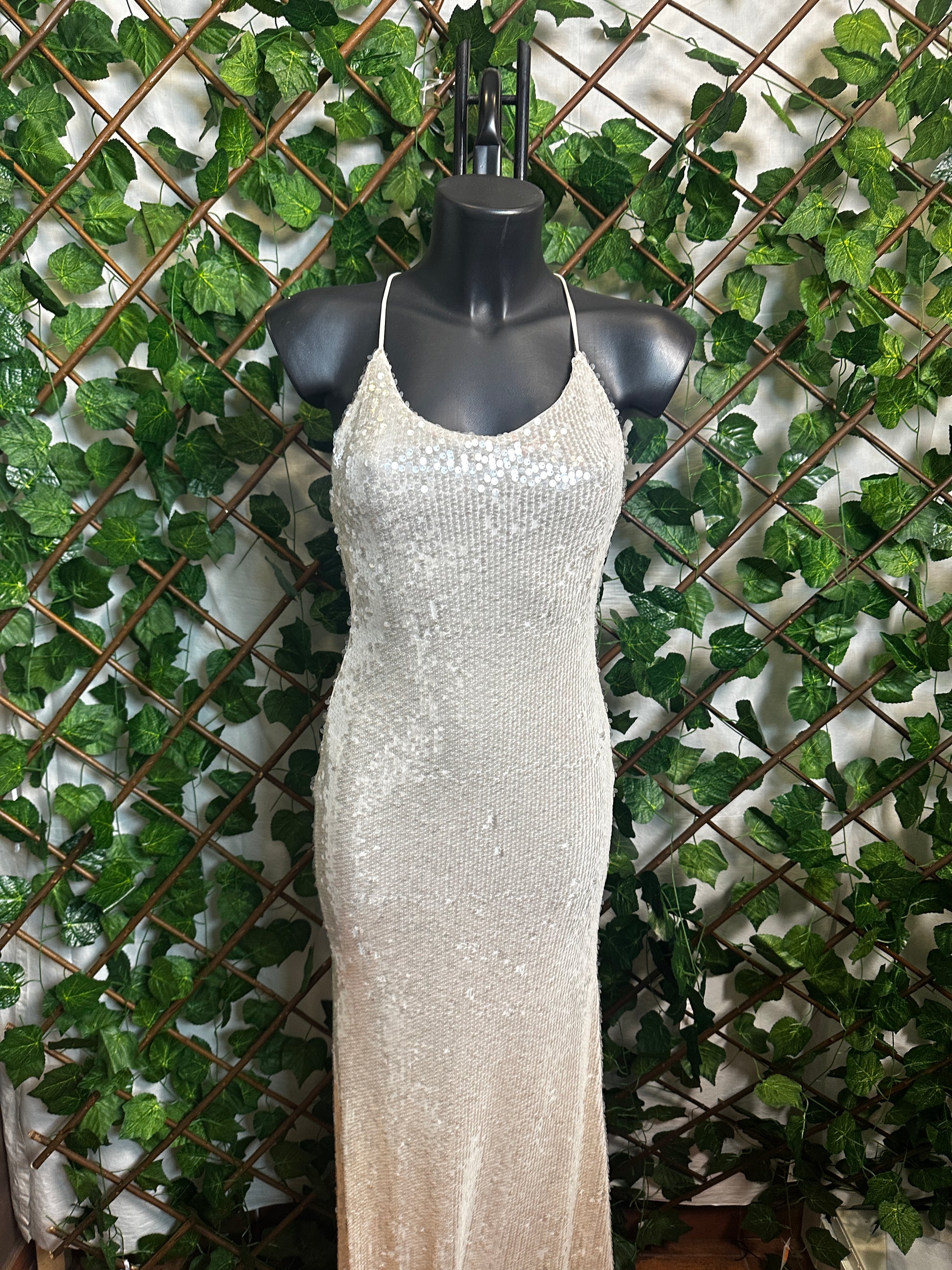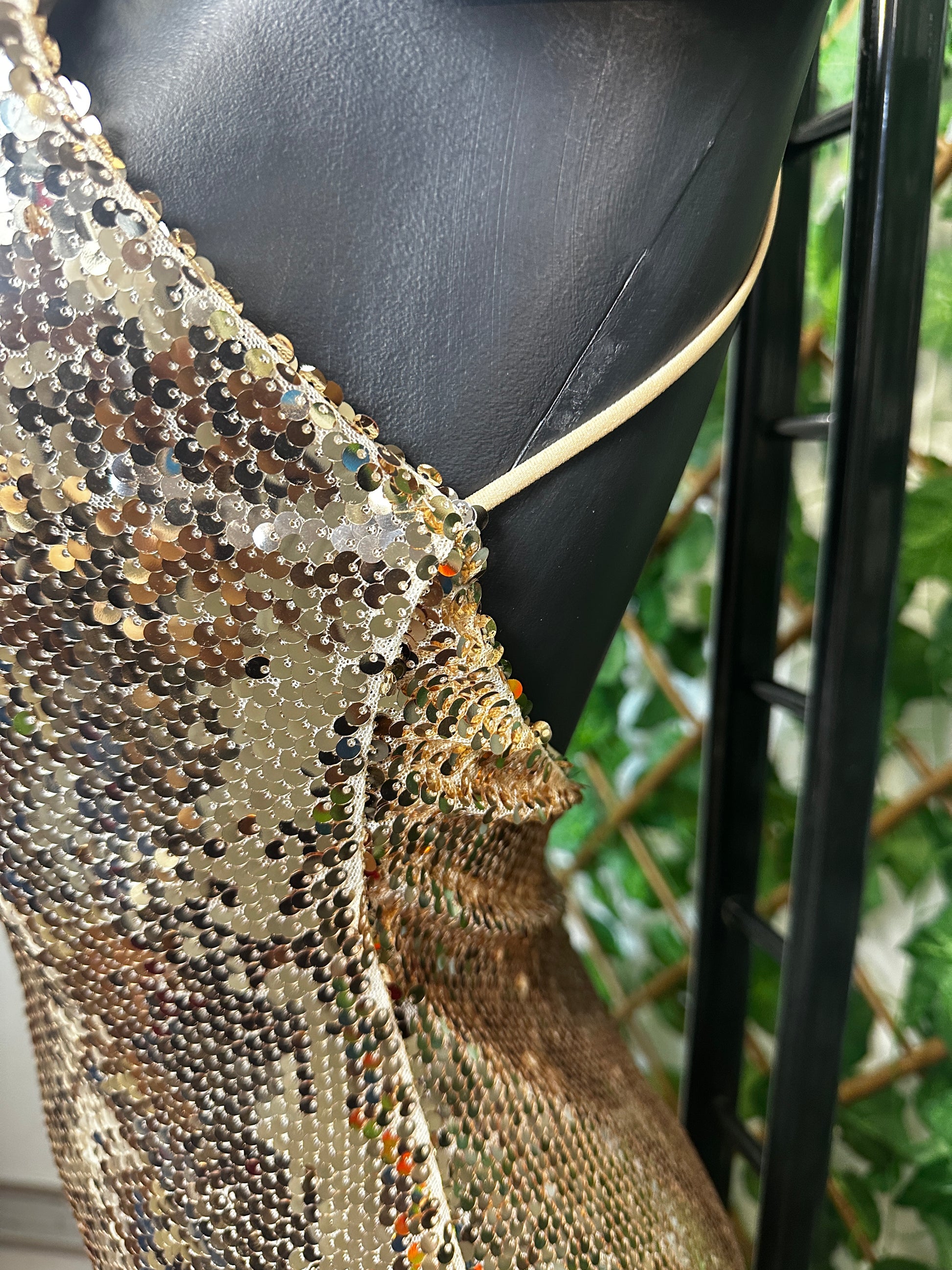 Questo vestito lungo e elegante è perfetto per le occasioni speciali. Realizzato con paillettes scintillanti, presenta una schiena scoperta per un tocco di sensualità. Con questo vestito sarai certamente al centro dell'attenzione, mentre la sua vestibilità perfetta ti farà sentire a tuo agio per tutta la serata.