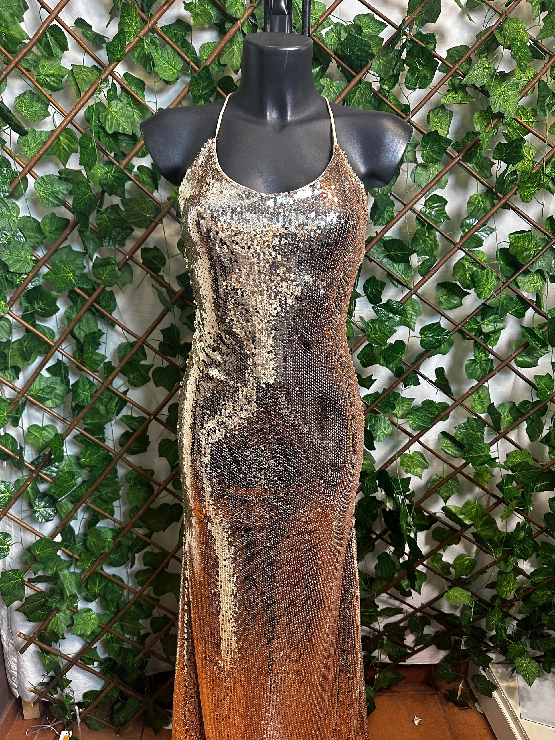 Vestito lungo elegante con la schiena scoperta in paillettes